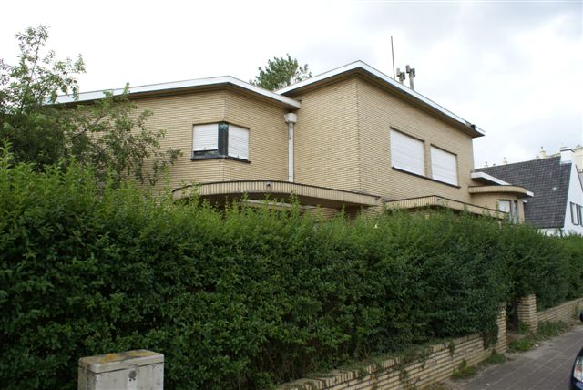 In 1937 wordt in de verkaveling van de Société Duinbergen-Knocke Extension een koppelvilla gebouwd in modernistische stijl. Eigenaar is grootindustrieel Raoul Amand uit Baudour (Henegouwen) die droomt van een tweewoonst aan de kust met de namen van zijn kleindochters Yvette en Jacqueline. Hij is echter geen liefhebber van de traditionele kustarchitectuur en staat eerder afkerig tegenover de Engelse cottages en villa's in Anglo-Normandische stijl. Het moet een woning worden in de "Nieuwe Stijl" of modernisme. De bouwheer doet beroep op de lokale architect Florent Vervalcke (1890-1972) die waarschijnlijk zijn enig modernistisch project uitwerkte aan de kust. Vervalcke geeft in zijn ontwerpen de voorkeur aan de Vlaamse hoevestijl. Zijn talrijk ontworpen villa's in Het Zoute zijn er nu nog getuige van. De dubbelvilla wordt gebouwd op de hoek van de Koninklijke Baan (Elizabetlaan) en huidige Zeerobbenlaan. De gevels, binnenbekleding, vloeren, trappen, plinten, alles is in keramiek. Ze hebben iets aparts, ogen charmant en zijn zeer bewoonbaar. Wat opvalt, is dat de koppelvilla één geheel lijkt te vormen. De twee villa's zijn gelijkaardig opgevat, maar verschillen van kleur. In de ene woonst is groen de hoofdkleur, in de spiegelvilla is dit Indisch geel. De uitdaging een bewoonbare woning te bouwen volledig bekleed met keramiektegels wordt glansrijk gewonnen door architect en bouwheer. Beide villa's werden gebouwd in een periode van 3 maanden. Kostprijs van deze dubbele villa, gebouwd op een terrein van 10 are? Sleutel op de deur, grond inbegrepen, 400.000 BEF. De beste materialen worden aangewend, grondstoffen eerste kwaliteit, metalen (bronzen) ramen, enz. De platte daken zijn oorspronkelijk afgewerkt met een koperen bekleding. De heer Raes-Ziane uit Sint-Martens-Latem staat in voor de betegeling in Cérabel . Zelfs het volledig servies is vervaardigd uit Cérabel . Het gebouw is zeer onderhoudsvriendelijk. De grote kuis is een peulschil! Na het verwijderen van de schilderijen, meubels en tapijt worden muren en grond met water afgespoten. Het architectuurtijdschrift Clarté (Art et art decoratif d'architecture) van juni 1938 wijdt een artikel aan de twee, voor hun tijd zeer merkwaardige, villa's met als titel Les villas en céramiques d' Albert Plage . We nemen u mee in de tijd: De gevels zijn opgetrokken in een lichtgeel gemskleurig zandsteen grès cérame . Door de keuze van steen is schilderen of bepleisteren overbodig. Valcke kiest bewust voor soberheid in zijn gevelindeling. Zowel in de zuid- als oostgevel zit een halfronde uitbouw met kleine ramen op de tussenverdieping, een typisch element uit het modernisme. Een overkragende kroonlijst met een plat dak toont duidelijk de horizontale geledingen in de opbouw van de woning. Op de benedenverdieping is bij iedere woongelegenheid een brede loggia uitgewerkt met eveneens een plat dak. De hoofdinkom is voorzien van een ronde luifel met lichtkoepel. Door de grote raampartijen valt enorm veel licht in de binnenruimten. Paden in donkerrode keramische blokjes slingeren zich doorheen de tuin. Het perceel is omringd door een laag stenen muurtje in dezelfde gevelsteen. De villa's zijn volledig onderkelderd. De hall is bekleed met groene, matte keramiektegels (10,3 x 10,3 cm ). We zien overal zitjes, planten, enkele schilderij… Maar: hoe kan je een kader aan een muur van keramiek ophangen? Het systeem is heel eenvoudig maar zeer vernuftig. Tussen de voegen van de keramische tegels steekt men een loden hulsje waarin een schroefdraad getrokken is. De haak voor het schilderij schroeft zich stevig vast in de buisopening. Zo worden de tegels niet beschadigd en hangt het schilderij rotsvast. Indeling en materiaalgebruik getuigen van harmonieuze eenvoud. Op het einde van de hall bevindt zich de trapopening, één trap van enkele treden leidt naar de familiekamers, de tweede voert naar de hoger gelegen gastenkamers. De groene muren zijn voorzien van smalle zwarte tegelbanden om de eentonigheid te breken. Links vinden we de grote huiskamer bestaande uit een eet- en zitkamer en een rookhoek. In de zitkamer staat een breed uitlopende schoorsteen met bovenop een rechthoekige spiegel. De schouwpartij bestaat uit grotere tegels in lichtblauw en is met goudkleurige plinten afgeboord. De donker gepolierde meubels en schilderijen in lichte tinten komen volledig tot hun recht op de champagnekleurige achtergrond van de muren. Op de gelijkvloerse verdieping is een vestiaire, keuken en doorgang. Boven bevinden zich drie kamers respectievelijk in zalmkleur, grijsblauw en groene pastelkleur betegeld. Ook hier is de kleur van de kamer volledig in overeenstemming met gordijnen, meubilair en bijhorigheden. Iedere kamer bezit een gemakkelijk te installeren toiletruimte en douche of badkamer . Hoger liggen de gastenkamers en twee ruimtes voor het personeel. Deze laatste zijn eveneens bekleed met keramische tegels en staan veraf van de doorsnee mansardekamertjes in andere villa's die dienst doen als meidenkamer. De auteur besluit: "nergens heb je het gevoel van kilheid dat je van keramiek zou verwachten". Terug naar 2007. Het is onmogelijk de bestaande toestand te restaureren en bewoonbaar te maken naar de huidige normen van wooncomfort en sociale context. Het is wel de bedoeling dat de geest van de woningen bewaard blijft, zodat het modernistisch juweeltje van de Knokse ontwerper Vervalcke terug in zijn glorie kan hersteld worden. Twee ontwerpers, namelijk architect Hendrik Jacobs en binnenhuisarchitect Patrick Chielens staan in voor de realisatie in opdracht van de nieuwe eigenaar Walter Pauwels. |
