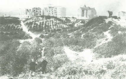 Waar nu de buurt van de Heilig Hartkerk is, in 1900 de duinen naar het Grand Hôtel toe.