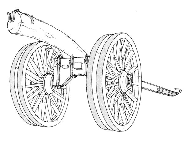 In het achterstel - met twee grote wielen - zijn maar twee blokken, namelijk het as- en het bovenblok. De langwagen die doorheen de achterblokken loopt, is met deze stevig verankerd door de twee achterarmen die in de blokken ingewerkt zijn. Het achterste bovenblok bevat eveneens twee rongen.