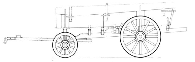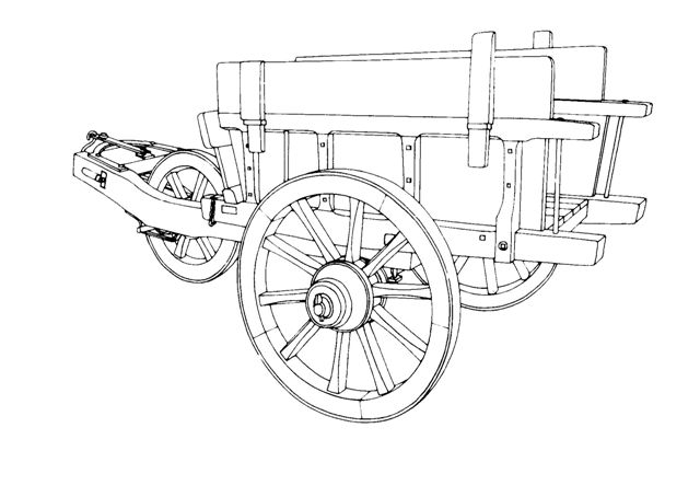 De wagenbak steunt op de voor- en achterblokken en op de binnenblokken die met een ijzeren spil op de langwagen bevestigd zijn. De bak bestaat uit de bodem, twee zijborden en een voor- en achterbord.