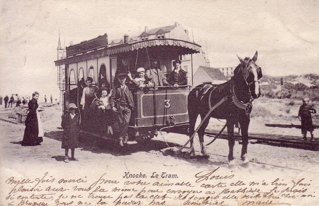 Koetsiers zagen dit met lede ogen aan want een rit met de paardentram, 10 centiem, was minder duur dan een rit met de koets die van 20 tot zelfs 50 centiem kon oplopen. Halfweg de rit naar zee toe, begon de weg te stijgen en was het zeer zwaar voor één paard om een volgeladen wagen te trekken. Als het dier de last niet meer aankon, moesten de reizigers van de tram uitstappen en een eindje helpen duwen. De tram bezondigde zich ook aan ‘buiten-sporig-heden’. En ja, het gebeurde wel eens dat de tram ontspoorde, de reizigers moesten dan met ‘vereende’ krachten proberen hem terug ‘op de riggels’ te krijgen.