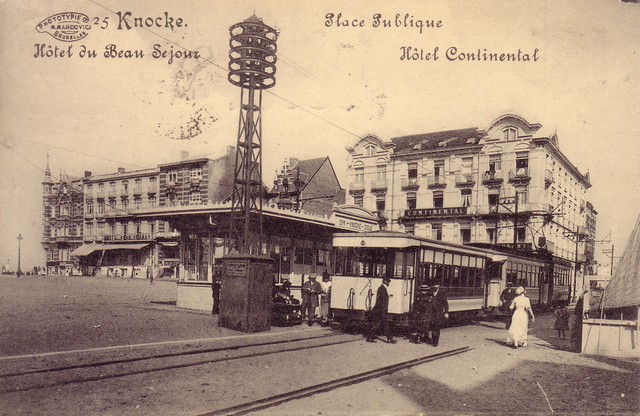 In de jaren 1880 verschenen de eerste hotels in Knokke. Hotelgasten werden afgehaald met paard en koets aan het treinstation van Heist. Door de tram Brugge-Sluis-Heist, die ook Knokke aandeed, werd alles anders. De badgasten die Knokke bereikten met de stoomtram werden afgezet te midden van het dorp bij de herberg ‘le Cygne’. Daar stonden koetsiers met paard en rijtuig te wachten om hen naar het strand of hun hotel te brengen.